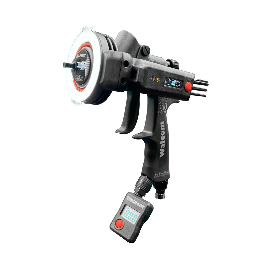 Kit containing 2 sprayguns, Genesi Carbonio 360 EVO HALO BASE and Genesi Carbonio 360 EVO HALO CLEAR: