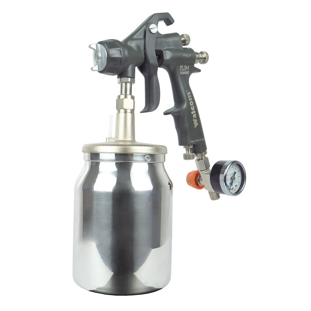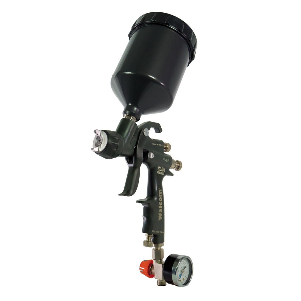 For over a decade SLIM has been synonymous with quality, reliability and versatility, appreciated all over the world of painting: from Car Refinish to Industry, to Woodworking. Today we introduce the Slim KOMBAT, a new, unique and revolutionary version of the spray gun that has made the history of Walcom®. Slim KOMBAT is incredibly light 381g , it breaks the rules, abandons the classic aluminum body and presents itself with an innovative magnesium body, injected with Kevlar® fiber (PAT. PENDING) Slim KOMBAT is available in 3 versions: HVLP, HALO, HALO SR, which share the same air consumption (220-260 l/min), high transfer efficiency (over 81% for primers and 70% for bases and clear) and for the atomization quality.
